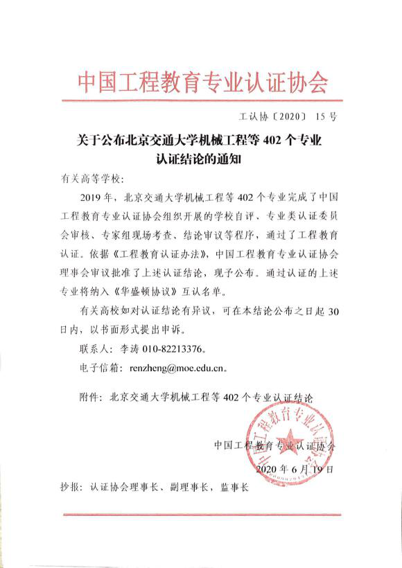 2020年6月19日,中国工程教育专业认证协会公布了2019年工程教育专业认证结论,DB电竞官方网站无机非金属材料工程专业通过了工程教育认证,有效期6年(有条件),全国共有402个专业同期通过工程教育认证,其中无机非金属材料工程专业共有6所高校通过。